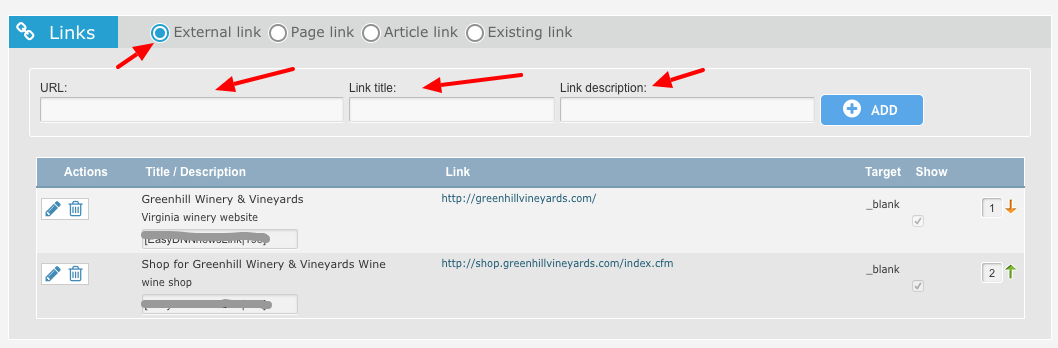 Link Description - additional text that appears after the link (eg. Facebook Page, Website)