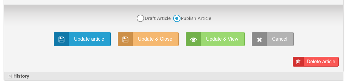 Caution. Selecting Delete Article will permanently delete it from the CMS.