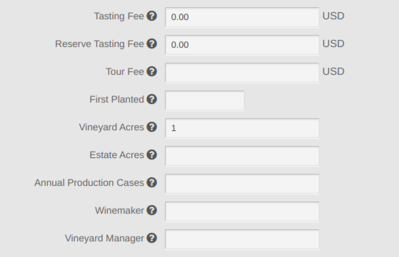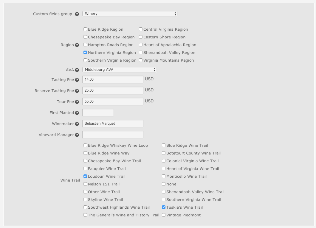 Field Groups: This is the section to add a bunch of important data about your winery!