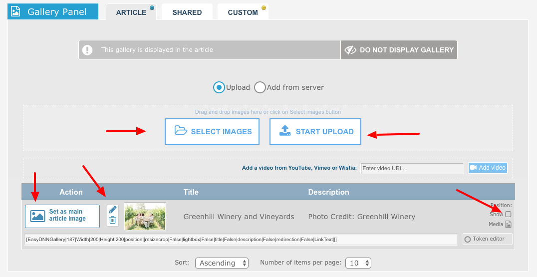 Click the Show box to show or not show the pics in the Gallery that appears below your profile article.