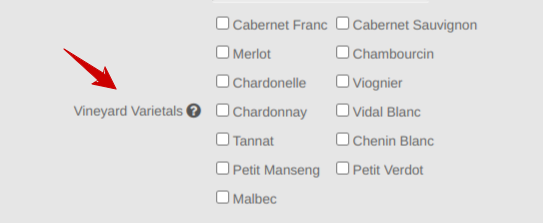Vineyard Varietals: Click the checkboxes for all the varietals you grow in the vineyard